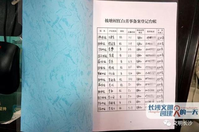 打開紅(hóng)白喜事備案登記表,可(kě)以看到從今年(nián)1月開始,社區參與了披塘村許多村民的(de)紅(hóng)白喜事操辦,确保宣傳到位,推動節儉辦紅(hóng)白喜事的(de)理(lǐ)念落實到位。
