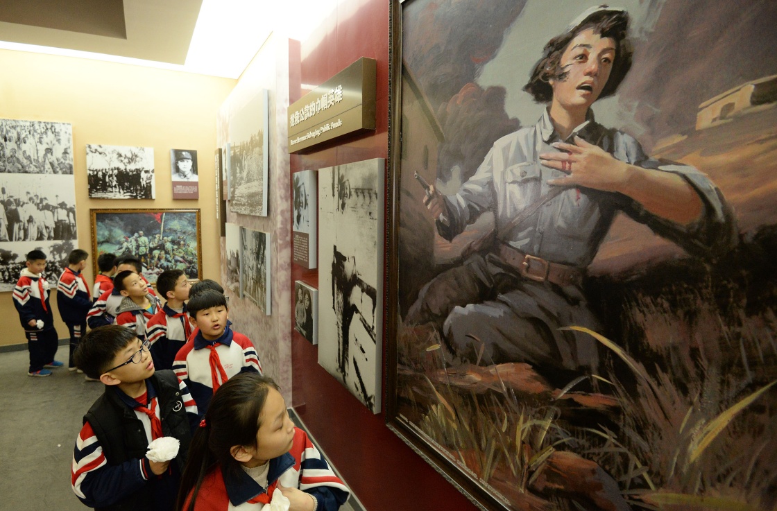 4月2日,河北(běi)省邯鄲市(shì)農林路小學(xué)學(xué)生在晉冀魯豫烈士陵園烈士紀念堂參觀。新華社發 郝群英 攝