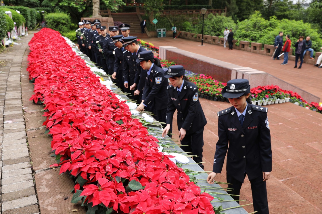 4月3日,在貴州省赤水市(shì)紅(hóng)軍烈士陵園,赤水市(shì)公安局民警向烈士獻花。新華社發 王長(cháng)育 攝