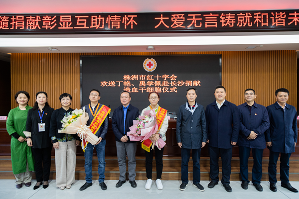 10月10日上午,株洲市(shì)造血幹細胞捐獻志願者丁豔、禹學(xué)佩捐獻歡送儀式在株洲市(shì)中心血站舉行(xíng)。丁豔、禹學(xué)佩分别是株洲第13、14例捐獻造血幹細胞志願者,據悉,活動當天也是株洲市(shì)第一(yī)次同時歡送兩位造血幹細胞捐獻志願者。