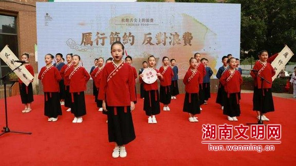 育才東屯小學(xué)的(de)小朋(péng)友們朗誦《節約糧食》。圖片來源:湖南文明網