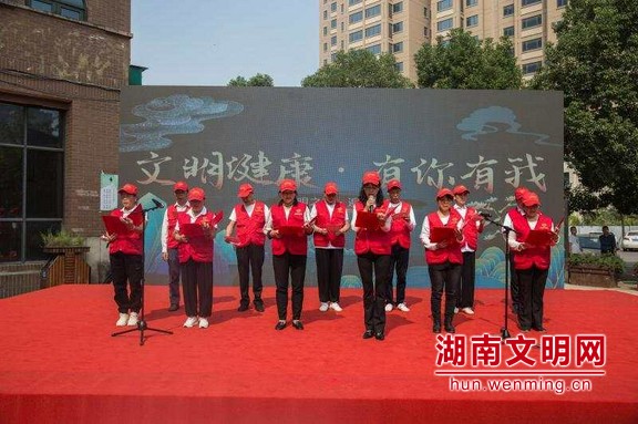 社區志願者正在進行(xíng)“文明健康,有(yǒu)你有(yǒu)我”倡議宣誓。圖片來源:湖南文明網