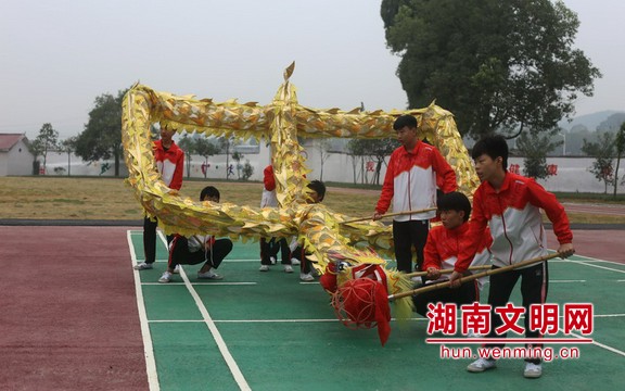 仁義中學(xué)鄉村少年(nián)宮特色項目——舞龍。圖片來源:湖南文明網 記者 彭團 攝