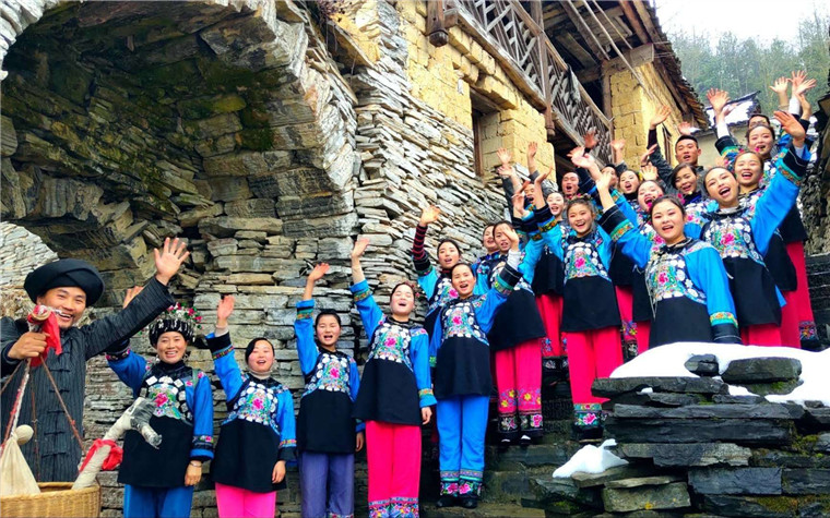苗族飲食文化傳習所,苗家阿妹阿哥(gē)歡迎客人進寨。圖片來源:湖南文明網