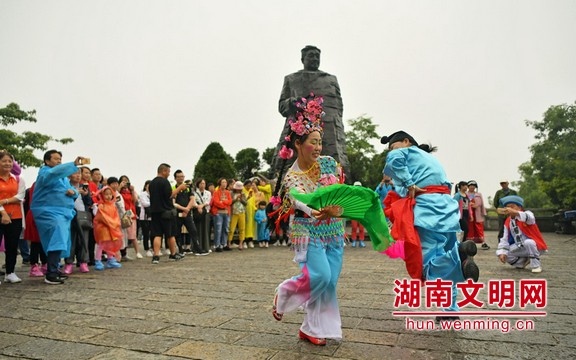 新時代文明實踐文化志願者在天子(zǐ)山為(wèi)遊客表演。圖片來源:武陵源區委宣傳部供圖 鄢淵 攝