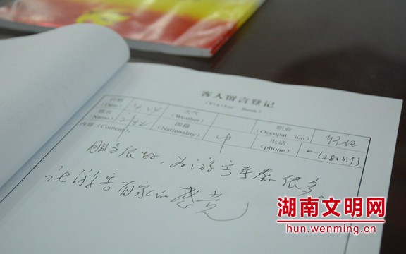 留言登記冊記錄遊客暖心留言。圖片來源:湖南文明網 記者 黃藤 攝