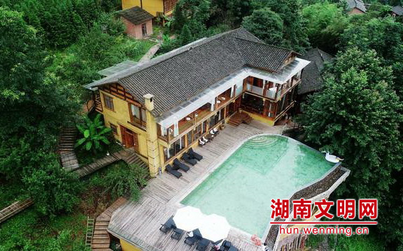 航拍下的(de)民宿“五号山谷”。圖片來源:武陵源區委宣傳部供圖 鄧道(dào)理(lǐ) 攝