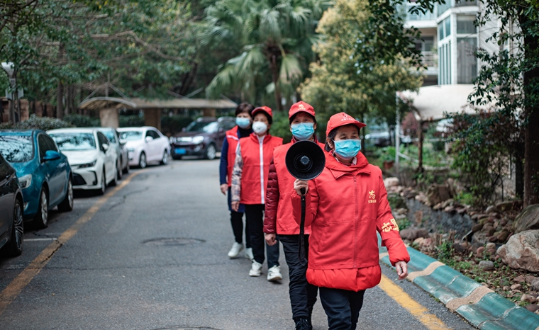 銀盆嶺街道(dào)志願者在小區巡邏。圖片來源:長(cháng)沙市(shì)銀盆嶺街道(dào)