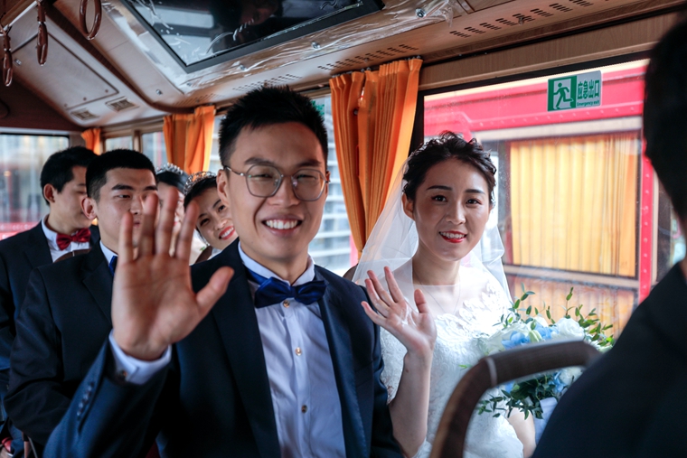 市(shì)民參加新時代文明實踐集體婚禮,向幸福出發。圖片來源:青島文明網提供