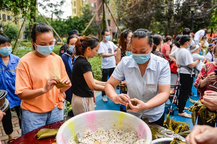 市(shì)民們開展包粽子(zǐ)比賽。圖片來源:成都網友