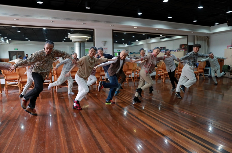 市(shì)民排練舞蹈《執夢夕陽》。圖片來源:闵行(xíng)虹橋鎮文明辦提供
