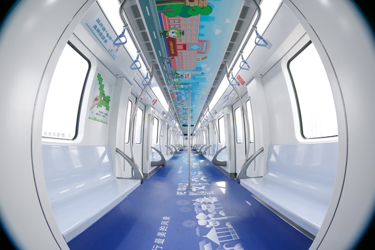 闵行(xíng)“創全”号地(dì)鐵列車2.0升級版。圖片來源:闵行(xíng)文明網提供