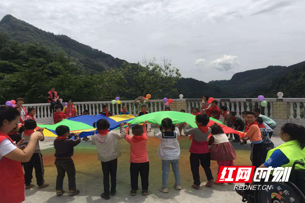 孩子(zǐ)們正在玩“彩虹傘”遊戲。圖片來源:紅(hóng)網時刻