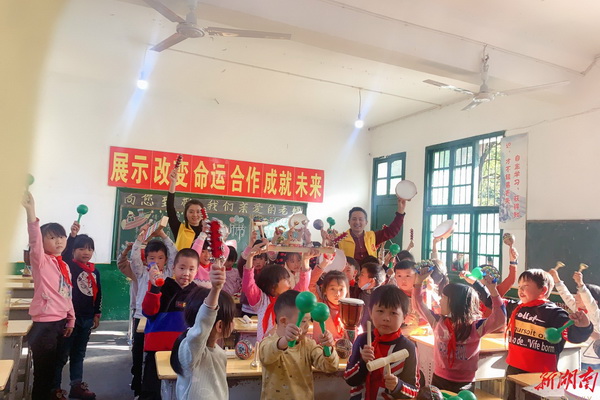湖南省婦女兒童活動中心的(de)志願者為(wèi)學(xué)生帶來了精彩的(de)藝術課程。圖片來源:新湖南