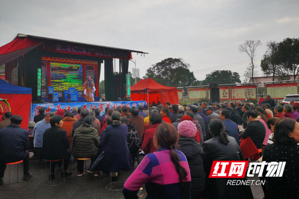 華容縣新時代文明實踐“治陋習、樹新風”文藝輕騎小分隊巡演現場。圖片來源:華容融媒體中心