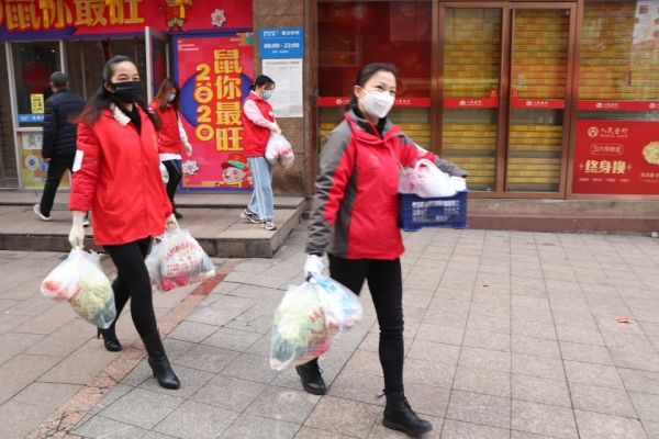 疫情期間,婁底志願者為(wèi)群衆送菜上門。圖片來源:婁底新聞網