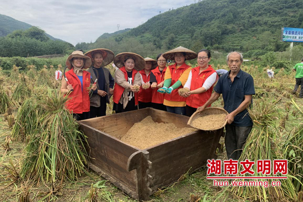 湘西新時代文明實踐志願者助農秋收。圖片來源:湖南文明網