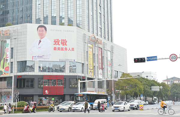 3月份,最美醫務人員肖像照登上城區最靓廣告牌。圖片來源:株洲晚報