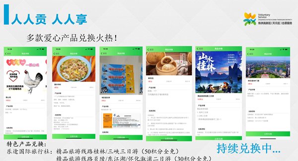 2020年(nián)以來,天元區出台《志願服務終身積分、星級評定、禮遇褒獎辦法(試行(xíng))》,通過志願服務激勵機(jī)制,推行(xíng)志願者積分獎勵制度,建立“貢享聯盟”,廣泛吸納更多商(shāng)家投身志願服務、自(zì)發參與社區治理(lǐ)。志願服務積分可(kě)以随時兌換愛心商(shāng)品或服務,如(rú)米粉、理(lǐ)發、改褲腳邊、鮮花、旅遊等,目前已經有(yǒu)230個貢享愛心商(shāng)家和(hé)83名貢享愛心達人提供産品和(hé)服務來禮遇志願者,使志願者的(de)單向付出變為(wèi)社會尊崇的(de)雙向循環,形成了更大範圍的(de)正向激勵,培育“人人貢,人人享”的(de)志願服務氛圍。