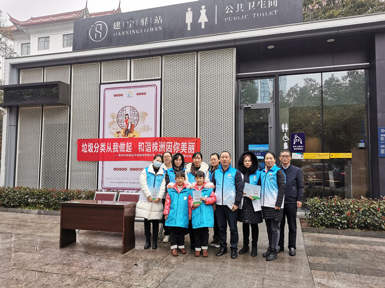 大手拉小手、全家齊上陣,株洲市(shì)民在建甯驿站前參加垃圾分類宣傳活動。圖片來源:株洲文明網