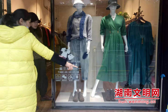網格員對店外堆放雜物現象予以勸導,現場整改。圖片來源:湖南文明網
