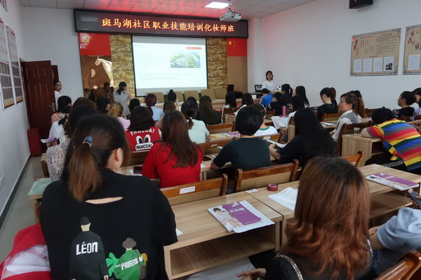 斑馬湖社區職業技能培訓化妝師班開課。圖片來源:望城融媒