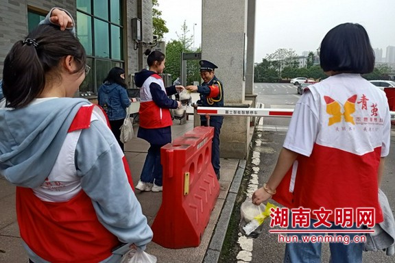志願者将愛心便當送給保安。圖片來源:湖南文明網