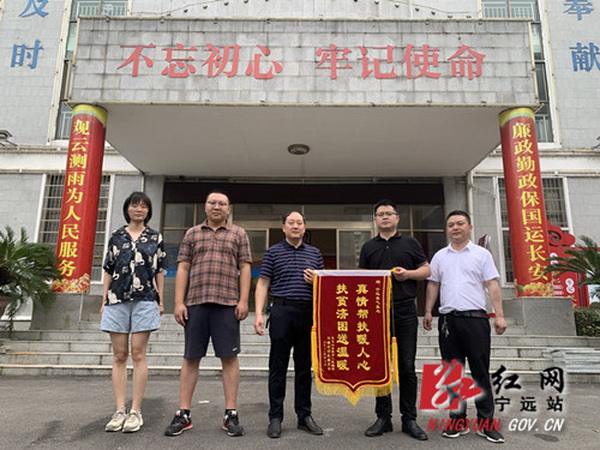 洋塘村村民委員會代表将錦旗送至甯遠縣氣象局。圖片來源:紅(hóng)網甯遠站