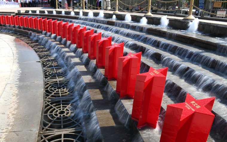 這是北(běi)京中華世紀壇聖火廣場上的(de)五星燈柱(5月30日攝)。新華社記者 金良快 攝