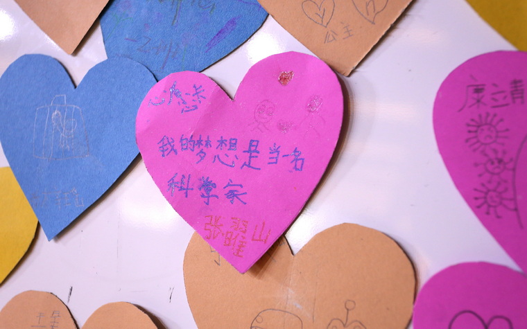 一(yī)年(nián)級新生的(de)心願卡。圖片來源:湖南文明網 記者 彭團 攝