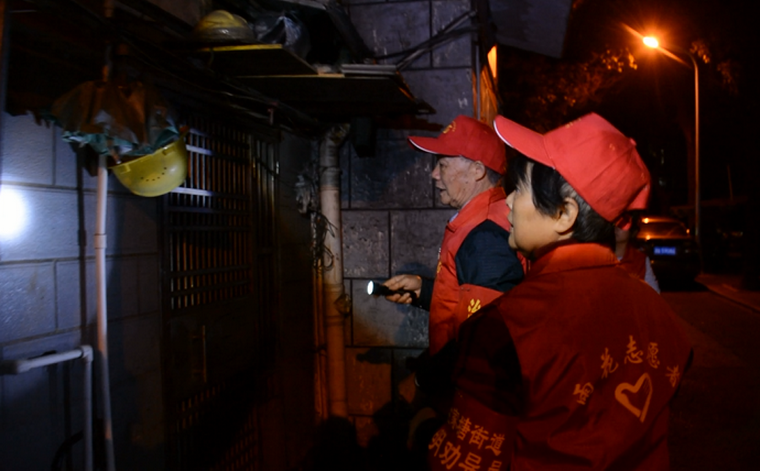 “鄰裏幫幫團”志願者夜間巡邏。圖片來源:長(cháng)沙市(shì)樹木嶺新時代文明實踐站